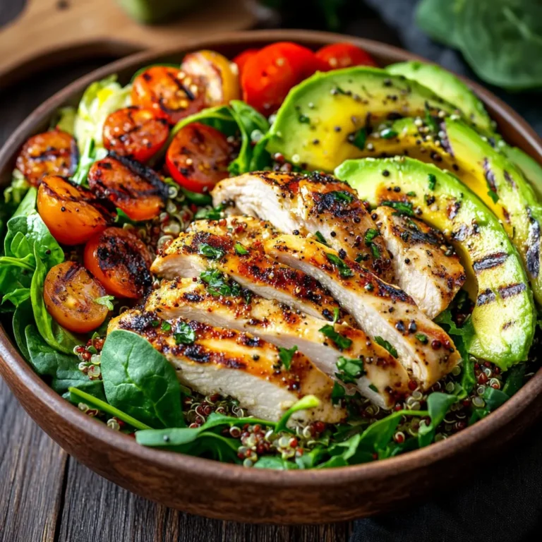In a large bowl, combine cooked quinoa, sliced grilled chicken, and diced avocado. Toss everything gently to avoid mashing the avocado. Add fresh vegetables like cherry tomatoes, cucumber, and mixed greens for an extra boost of nutrients. Top it off with your preferred dressing, such as a lemon vinaigrette or balsamic dressing.